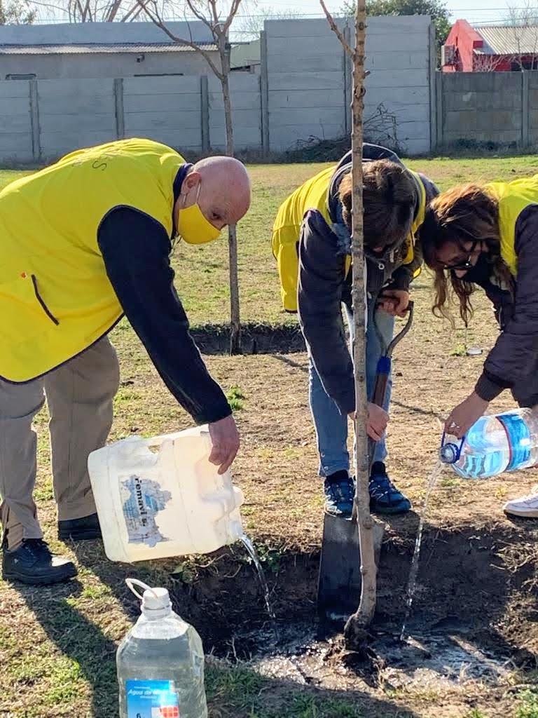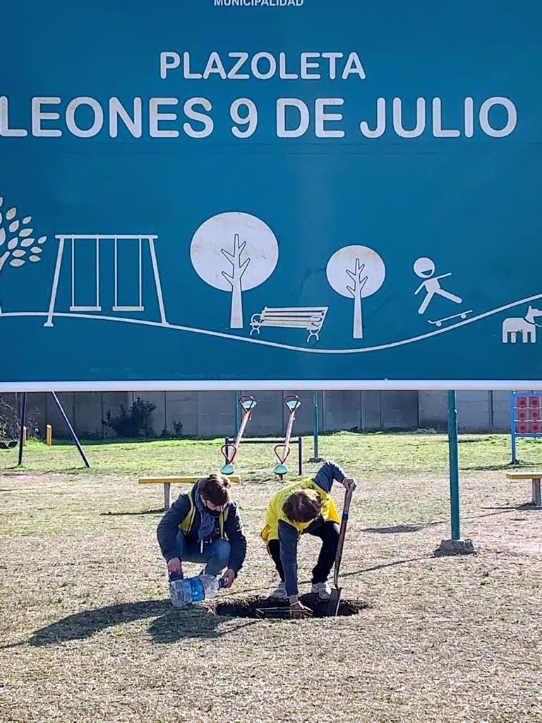 Se realizó un trabajo de mantenimiento en la plazoleta Leones. Allí se sacaron los yuyos, se colocaron árboles y se regó, dejando la plazoleta en óptimas condiciones para que los niños de la zona la disfruten.