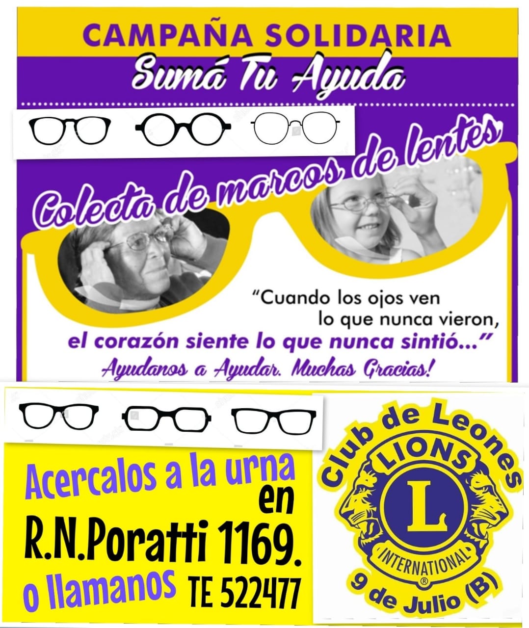 Según afirman desde la entidad «Debido a la gran demanda de anteojos y siendo los únicos en la ciudad que los otorgamos gratuitamente y al gran incremento de los costos de los mismos, iniciamos está campaña de recolección de marcos. (Hasta ahora estábamos dando marcos nuevos) Tal vez haya gente que los tiene en algún cajón sin uso y a nosotros nos sirve para brindárselo a alguien que lo necesite» aseguraron.