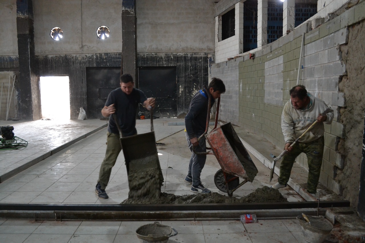 Por su parte el Arquitecto Alonso explico que el hormigón permite una nivelación de todo el piso, para luego una capa de pintura especial, con el objetivo de contar a futuro un piso de goma o madera. Ya con esta nivelación de hormigón bien podrán practicarse distintas actividades deportivas, informo