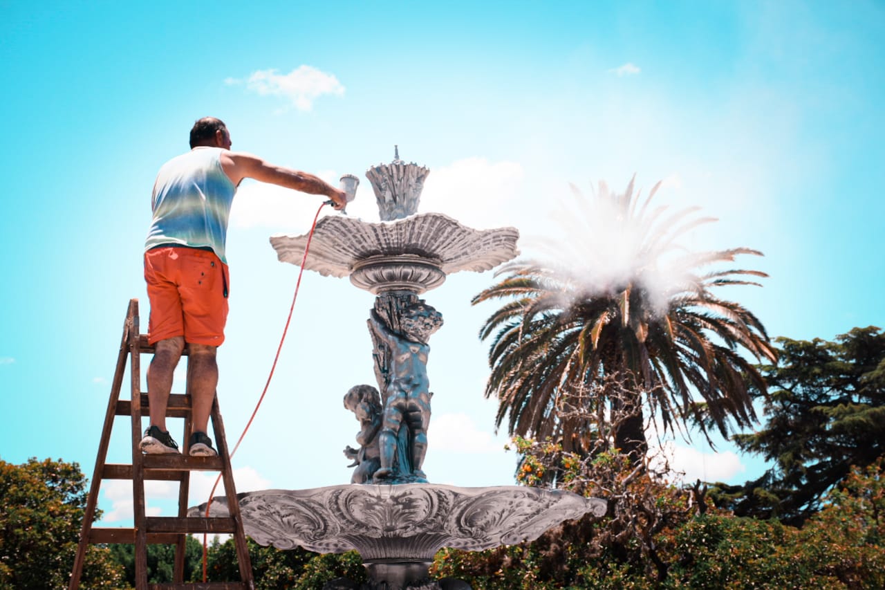 Comenzaron las obras de pintura en la fuente de Plaza Belgrano