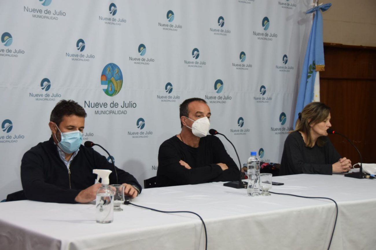 Integrantes del Comité de Crisis en Salud de Nueve de Julio, en esta oportunidad la secretaria de Salud, Dra. María José Gentile y los Dres. Raúl Zapata (Clínica Independencia) y José María Mignes (Hospital Julio de Vedia), ofrecieron una conferencia de prensa para detallar la situación epidemiológica del distrito en el contexto de la pandemia de Coronavirus, la que es sensiblemente mejor a la de semanas anteriores, tal como queda evidenciado en los informes diarios.