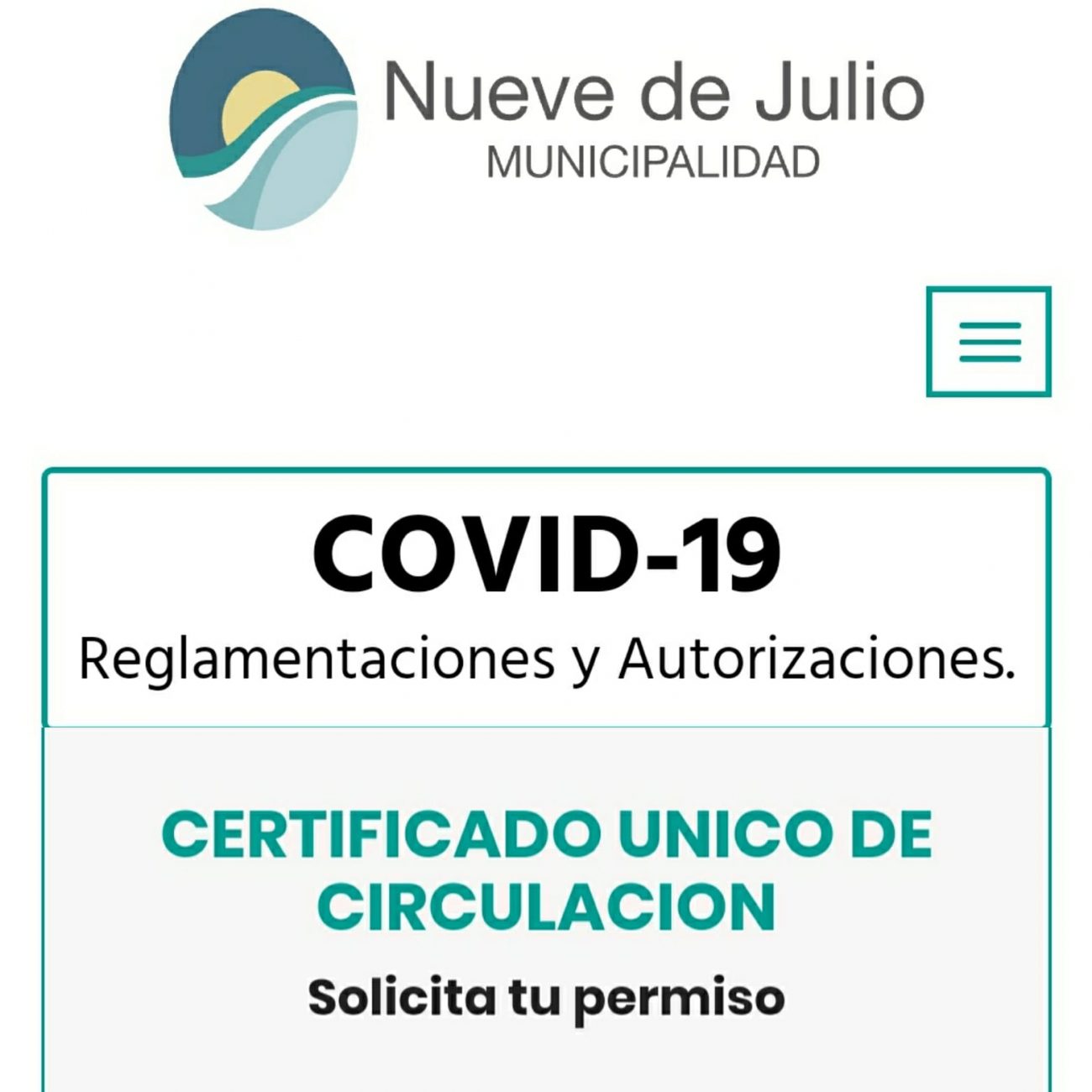 Lo mismo rige para quienes necesiten solicitar el permiso de circulación para trabajadores esenciales por primera vez. Los permisos concedidos anteriormente serán válidos únicamente hasta hoy, a partir de mañana rige el nuevo, que puede obtenerse a través de la página web de la Municipalidad de Nueve de Julio https://www.9dejulio.gov.ar/covid19.php (ingresando sobre el margen superior derecho al apartado “certificado único de circulación”