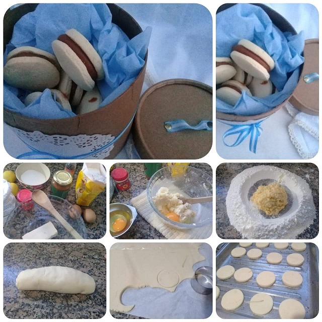 Realizar un batido con la manteca, el azúcar y la ralladura. Una vez unido agregar los huevos de a uno. Lograr un batido homogéneo y volcarlo sobre las mezclas de los productos secos previamente tamizados. Forma la masa sin amasar demasiado, envolver en film llevar a la heladera por 1 hora. Estirar la masa sobre papel manteca y cortar con cortante circular. Llevar a horno a 180° por 12 minutos. Dejar enfriar las tapas y rellenarlo con dulce de leche. Pasar por coco si lo deseé.