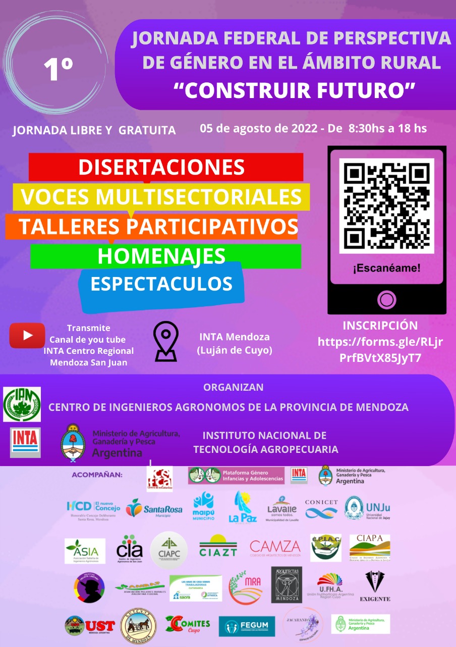 Bajo el lema «Construir Futuro» se prepara la primera Jornada Federal sobre Perspectiva de Género organizada por el Centro de Ingenieros Agrónomos de la Provincia de Mendoza (CIAM), el Instituto Nacional de Tecnología Agropecuaria (INTA) y el Ministerio de Agricultura, Ganadería y Pesca de la Nación. La actividad, que se enmarca dentro de los 80 años del CIAM, se realizará el viernes 5 de agosto en la localidad de Luján de Cuyo, en las instalaciones del INTA, Mendoza. Se reunirán representantes de diversas provincias: “Somos una red interprovincial que está representada por mujeres de Salta, Corrientes, San Luis, Córdoba, Catamarca, Tucumán y Mendoza”, expresa la Ing. Adriana Mónica Carrión, Vicepresidenta de CIAM.