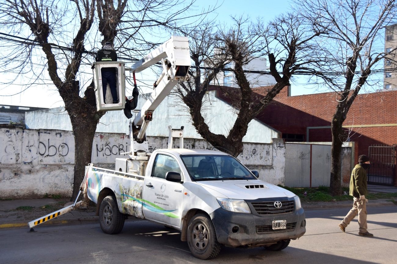 La Municipalidad de Nueve de Julio, a través de la Dirección de Espacios Verdes y Control de Plagas, se encuentra dando continuidad a la campaña de poda 2020, extendiéndose en diferentes etapas a los distintos sectores de la ciudad, abarcando las distintas especies ubicadas en la vía pública que obstaculicen luminarias y/o cámaras de seguridad, contemplándose también casos particulares y ejemplares de plazas y espacios públicos, como sucedió hoy en Plaza España-