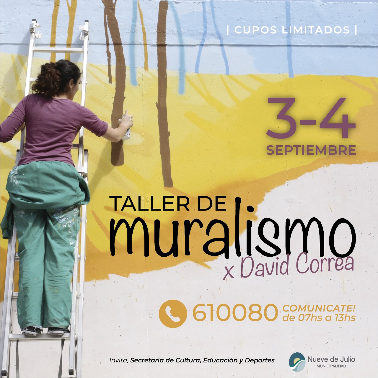 La Dirección de Cultura de la Municipalidad de Nueve de Julio dará continuidad al taller de muralismo, iniciado semanas atrás, el que tendrá lugar los días sábado 3 y domingo 4 de septiembre, a cargo de David Correa.