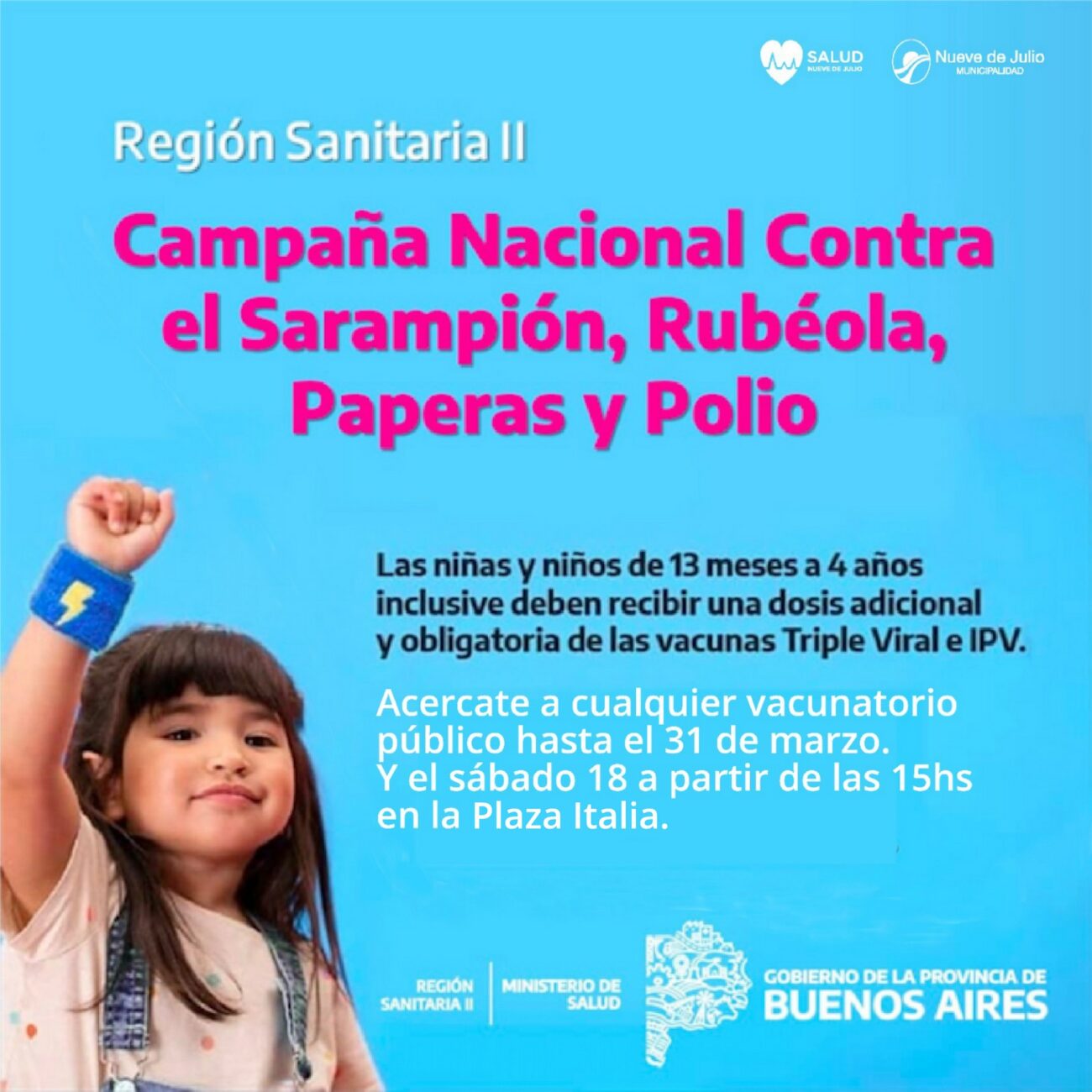 Todas las niñas y todos los niños de 13 meses a 4 años inclusive deben recibir las dosis adicionales, gratuitas y obligatorias de las vacunas Triple Viral (contra sarampión, rubéola y paperas) e IPV (contra poliomielitis), más allá de las dosis recibidas previamente. No requieren orden médica.
