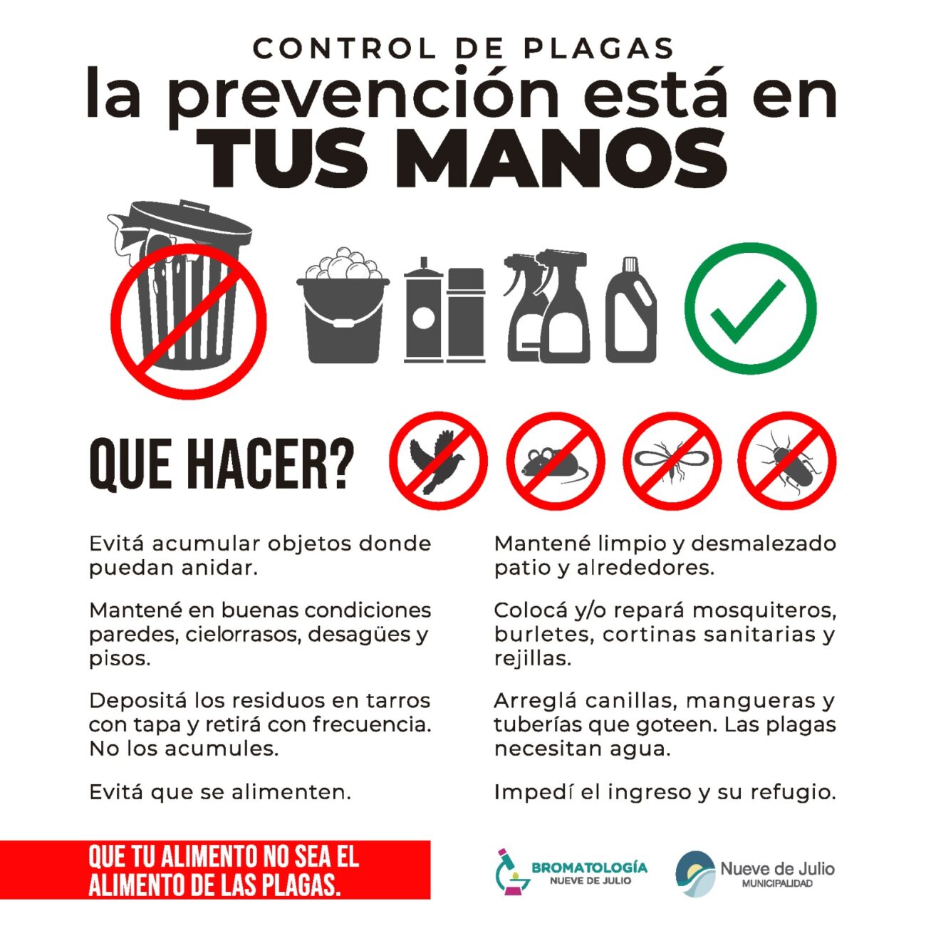 La Dirección de Bromatología de la Municipalidad de Nueve de Julio, recuerda las siguientes recomendaciones para el control de plagas: