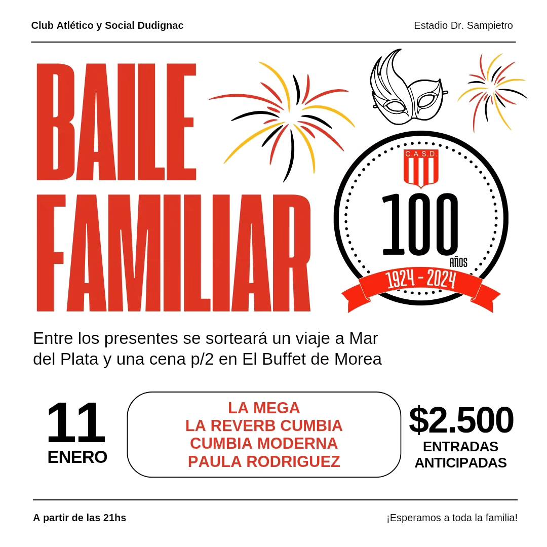 Llegar al centenario es una buena excusa para seguir con los festejos aunque el calendario ya haya cambiado a un nuevo año. En Dudignac continúan los festejos, y este sábado 11/1 hay un corso infantil y noche familiar en la cancha del club local.