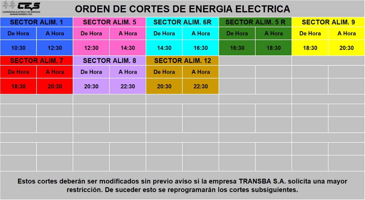 Cabe aclarar que se trata de una situación ajena a la Cooperativa, ya que es la empresa de transporte Transba la que demanda este tipo de acciones ante la sobrecarga energética que atravesamos en nuestra ciudad.