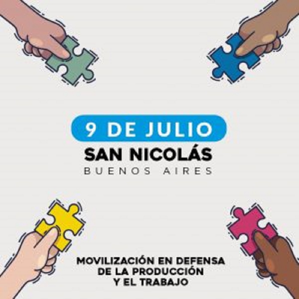 En rigor de verdad, el encuentro en San Nicolás también es fomentado por políticos de la oposición que replican esta convocatoria en las redes sociales y grupos de WhatsApp: “invitamos a participar a todos los sectores; campo, comercio, construcción, transporte turismo, industria y servicios de la concentración y manifestación en defensa de la producción y el trabajo”.