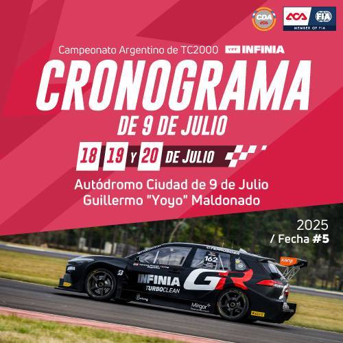 Fue presentado el cronograma de actividades de la 5° fecha del 46º Campeonato Argentino de TC2000 YPF INFINIA que se llevará a cabo el 18, 19 y 20 de julio en el Autódromo Ciudad de 9 de Julio Guillermo “Yoyo” Maldonado, junto a la 5º fecha del Campeonato Argentino de Fórmula Nacional, la 6º fecha del 31º Campeonato Argentino de Top Race YPF INFINIA y una nueva fecha de la Fiat Competizione.