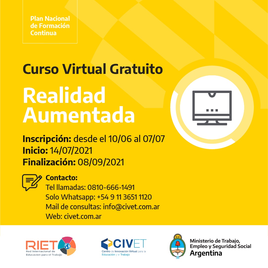 La oficina de Empleo de la Municipalidad de Nueve de Julio informa sobre el dictado de un interesante curso virtual gratuito de realidad aumentada.