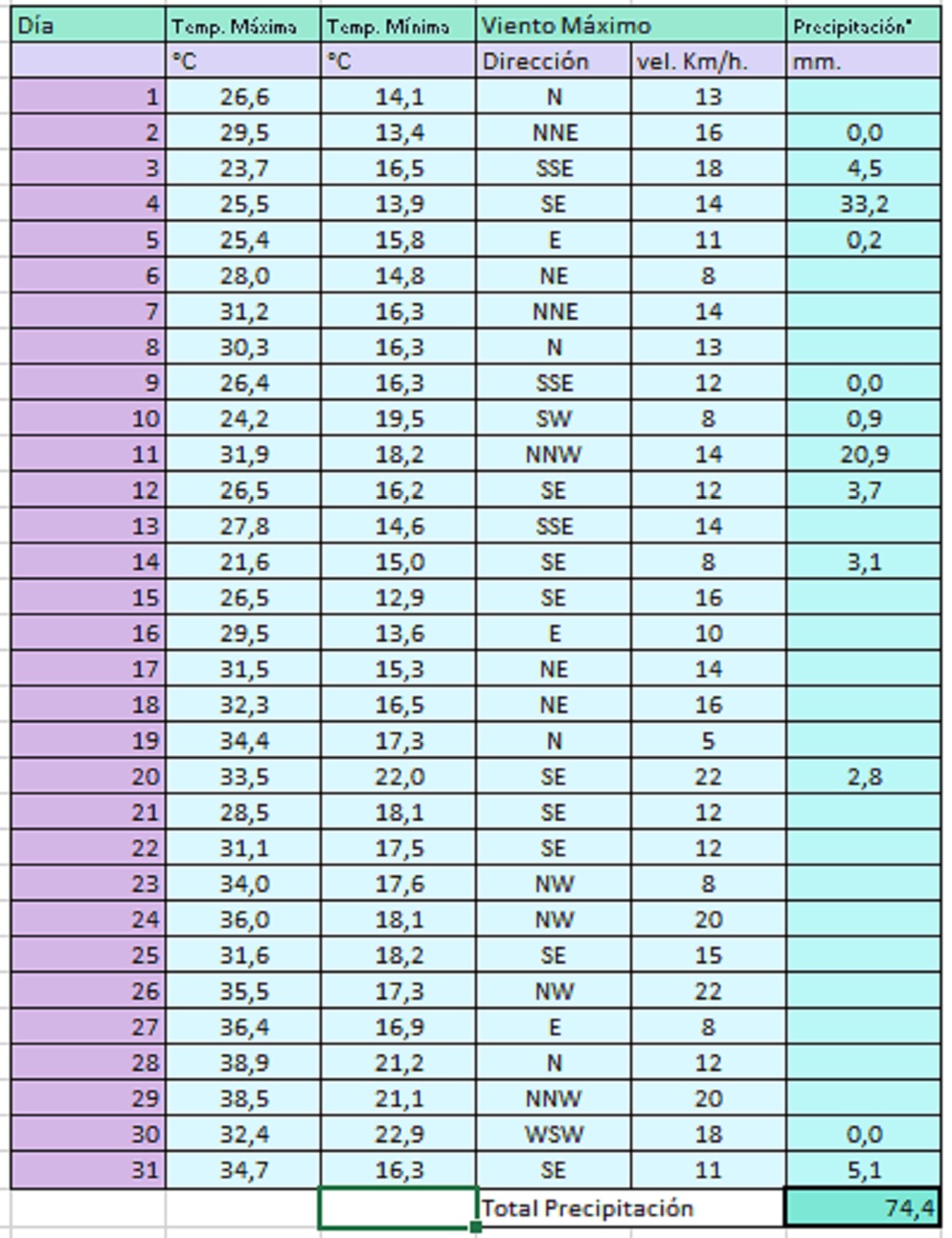GeneralDatos meteorológicos de 9 de Julio del mes de diciembre de 20211 enero 2022 FacebookTwitterPinterestWhatsAppImpresiónTelegram Datos brindados por la estación meteorológica 9 de Julio. La precipitación corresponde al día pluviómetrico meteorológico, el cual corresponde desde las 9 hs del día 1 hasta las 9 hs del día 2.Últimas noticias Regionalesadmin - 27 marzo 2026Kicillof abrió el paraguas con asistencia parcial En un acto que combinó gestión provincial con un marcado tono político, el gobernador de la provincia de... Deportes Básquet: Infartante victoria de la Primera de Atlético 9 de Julio admin - 27 marzo 2026 Locales Brangeri y la defensa de los Veteranos de guerra admin - 27 marzo 2026 Deportes Zoe Bravo, campeona nacional de patín admin - 27 marzo 2026 Locales Absa informa: Análisis mensual en French admin - 27 marzo 2026 Noticias relacionadas Veteranos de Malvinas denuncian «usurpación de títulos» General admin - 26 marzo 2026 Adorni salió a dar la cara General admin - 26 marzo 2026 Mujeres sobrevivientes: criminales o víctimas? General admin - 25 marzo 2026 El «muro del día 20» y la silenciosa trampa del endeudamiento doméstico Economia admin - 25 marzo 2026