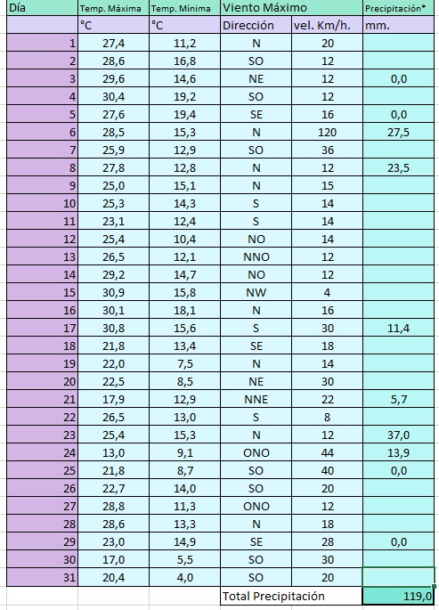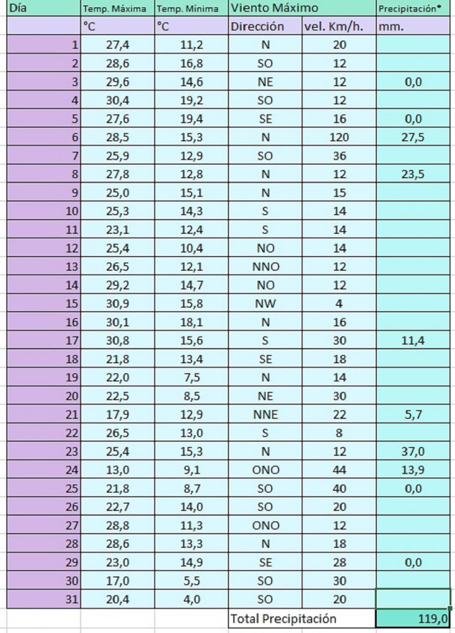 GeneralDatos meteorológicos de 9 de Julio del mes de marzo de 20224 abril 2022 FacebookTwitterPinterestWhatsAppImpresiónTelegram Datos brindados por la estación meteorológica 9 de Julio. La precipitación corresponde al día pluviómetrico meteorológico, el cual corresponde desde las 9 hs del día 1 hasta las 9 hs del día 2.Últimas noticias Localesadmin - 30 marzo 2026Augusto Ippoliti asumió la presidencia del PJ localEn una concurrida ceremonia celebrada en el salón de la Unión Obrera Metalúrgica, el Partido Justicialista de 9 de... Columnistas El Editorial del Lobo / Cuando gobernar es esperar admin - 30 marzo 2026 Locales “4deCopas-gate”: ni freezer, ni cajonera admin - 30 marzo 2026 Locales Baztarrica, el presidente del centenario admin - 29 marzo 2026 Columnistas El Bolillero semanal de Extra admin - 29 marzo 2026 Noticias relacionadas El caso Noelia y el debate sobre la eutanasia General admin - 29 marzo 2026 Veteranos de Malvinas denuncian «usurpación de títulos» General admin - 26 marzo 2026 Adorni salió a dar la cara General admin - 26 marzo 2026 Mujeres sobrevivientes: criminales o víctimas? General admin - 25 marzo 2026