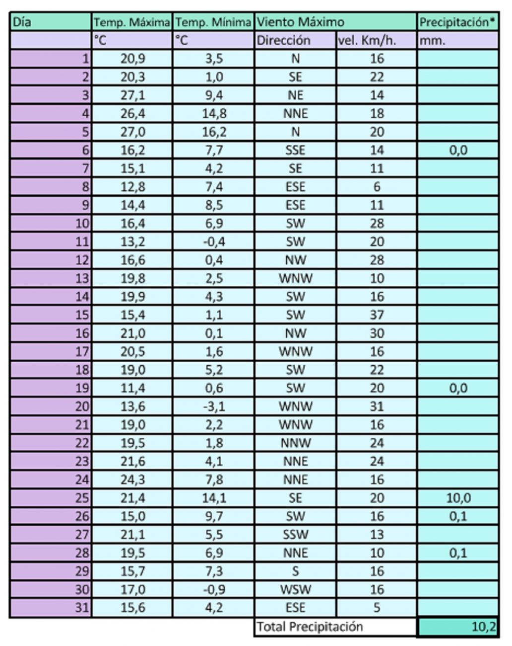 GeneralDatos meteorológicos de agosto3 septiembre 2020 FacebookTwitterPinterestWhatsAppImpresiónTelegram Los mismos son brindados por la Estación Meteorológica 9 de Julio. La precipitación corresponde al día pluviómetrico meteorológico, el cual corresponde desde las 9 hs del día 1 hasta las 9 hs del día 2.Últimas noticias Regionalesadmin - 16 marzo 2026PBA inicia una revisión integral de las tarifas de luzEl Gobierno de la provincia de Buenos Aires puso en marcha la segunda etapa de su Revisión Tarifaria Integral... General El Sr. VTV y la jornada inaugural en 9 de Julio admin - 16 marzo 2026 Agro El impacto en el agro si se cierra Ormúz admin - 16 marzo 2026 Locales Inscripción abierta para Ronda de Negocios admin - 16 marzo 2026 Regionales Interna PJ PBA: triunfo mayoritario para Kicillof admin - 16 marzo 2026 Noticias relacionadas El Sr. VTV y la jornada inaugural en 9 de Julio General admin - 16 marzo 2026 Caso $LIBRA: Las llamadas comprometedoras General admin - 16 marzo 2026 Se viene el invierno General admin - 15 marzo 2026 Ahumada: el 5 libertario General admin - 14 marzo 2026