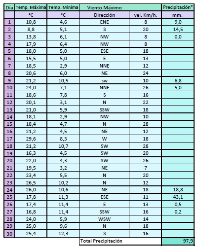 GeneralDatos meteorológicos de septiembre1 octubre 2020 FacebookTwitterPinterestWhatsAppImpresiónTelegram Los mismos fueron realizados por la Estación Meteorológica 9 de Julio.Últimas noticias LocalesMartin Parise - 19 enero 20269 de Julio recibió un subsidio para caminosEl gobierno de la provincia de Buenos Aires ha formalizado una asistencia económica clave para dos distritos del interior... Locales El basural cada vez huele peor Martin Parise - 19 enero 2026 General La tragedia ferroviaria en España: víctimas e interrogantes Martin Parise - 19 enero 2026 General Impulso a la digitalización de las tasas municipales Martin Parise - 19 enero 2026 Deportes Comienzan los mata-mata en el futsal Martin Parise - 19 enero 2026 Noticias relacionadas La tragedia ferroviaria en España: víctimas e interrogantes General Martin Parise - 19 enero 2026 Impulso a la digitalización de las tasas municipales General Martin Parise - 19 enero 2026 Acuerdo Chevron/DAPSA para venta de combustible General Martin Parise - 19 enero 2026 Mercosur y la Unión Europea sellaron el acuerdo comercial General Martin Parise - 18 enero 2026