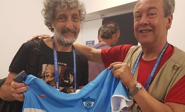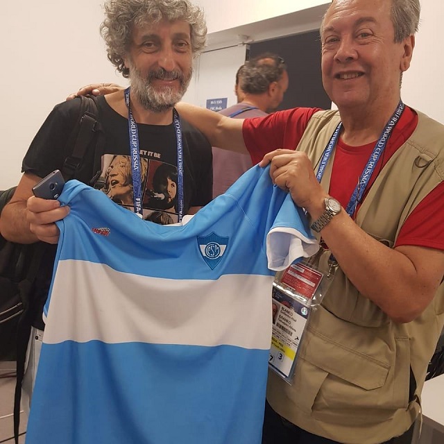 El hombre no tenía por qué cambiar su idea de que la música a veces une, aunque a veces, no. Arreglamos un dinero para que desde una de las tres estaciones mayores de Moscú nos llevara hasta la concentración de la selección, en Bronnitsy, y desde allí, después de una espera de dos horas para poder cubrir entrenamiento y la conferencia de prensa, trasladarnos hacia la otra punta de Moscú, hasta nuestra guarida en los aledaños de un pueblito llamado Protov. En total, unos cien kilómetros, o algo más. Una rutina durante cuarenta días, alternada con distintos escenarios, caminos, ciudades. Y, ya recostado en la amplia cama de la casa de la campiña, sentí un ardor en la cara y comprendí la consecuencia de la insolación, la que en parte pudo mitigar mi querida camiseta, ésa que tanto tenía que ver con mis sentimientos. La de los colores de mi infancia, la azul, blanca y azul, que una década atrás me había regalado el Chueco Pastor en mi 9 de Julio natal. La de San Martín, claro que ésta era de una tela distinta a la de piqué que usaba cuando la preadolescencia era una pelota de trapo y a veces la 5 oficial, como puse en la canción. La tela de la actual no era tan ríspida, la poliamida la hacía más suave y liviana, y fue la que me cubrió durante gran parte del trayecto. Ese mismo día nos habíamos encontrado con mi amigo y colega Ariel Scher mientras aguardábamos la conferencia de Fazio y Lo Celso en nombre del plantel de la selección, y se me ocurrió posar con la camiseta. Incluso le conté de mi club, de que su amigo el escritor Sacheri había incluido en su libro Papeles en el viento una historia literaria en la que incluyó nada menos y nada más a San Martín de 9 de Julio… Estaba en eso cuando me dio ganas de ponerla en la almhoada, como hacía cuando estando en la quinta me dejaban llevar a casa la camiseta y hacía lo mismo, dormía con ella pegada a la cabeza. Me levanté para buscarla en la mochila, pero no estaba allí. Me la había olvidado en el taxi, y sentí una impotencia tremenda por la pérdida, fue como que la abandoné y me cercó una culpa histórica.