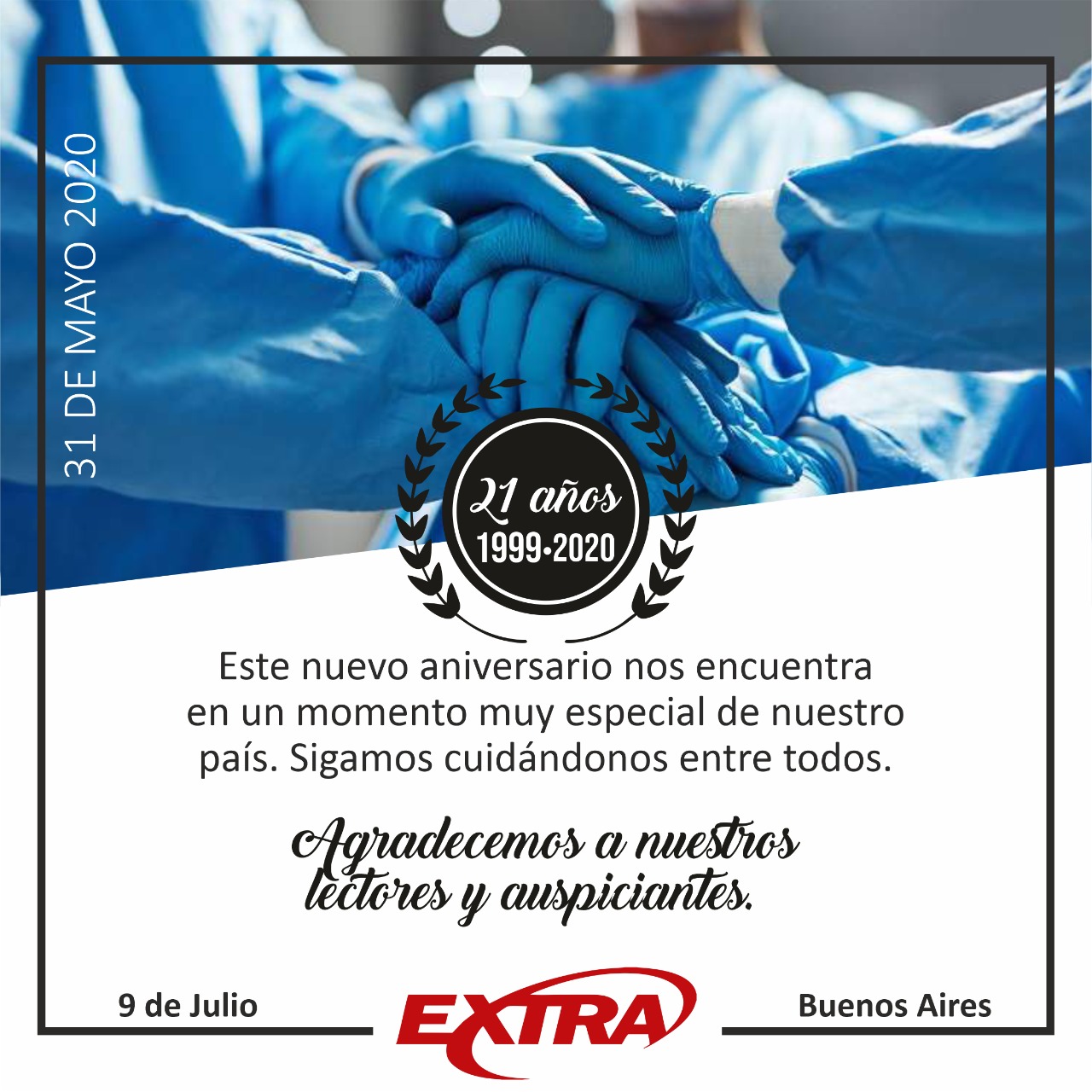 Hoy, 31 de mayo de 2020, SEMANARIO EXTRA arriba a sus 21 años ininterrumpidos de vida institucional.