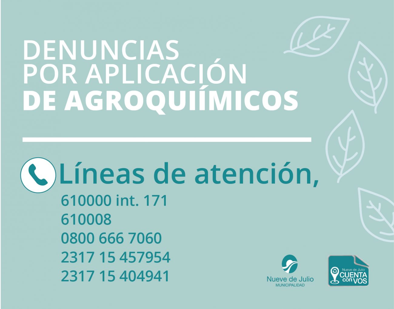 La Municipalidad de Nueve de Julio, a través de la Dirección de Gestión Ambiental, comunica que –con el objeto de dar la respuesta inmediata que la temática amerita- el único medio habilitado para recepción de denuncias por temas relacionados a Agroquímicos, es el Centro de Monitoreo, que se encuentra disponible las 24 hs.