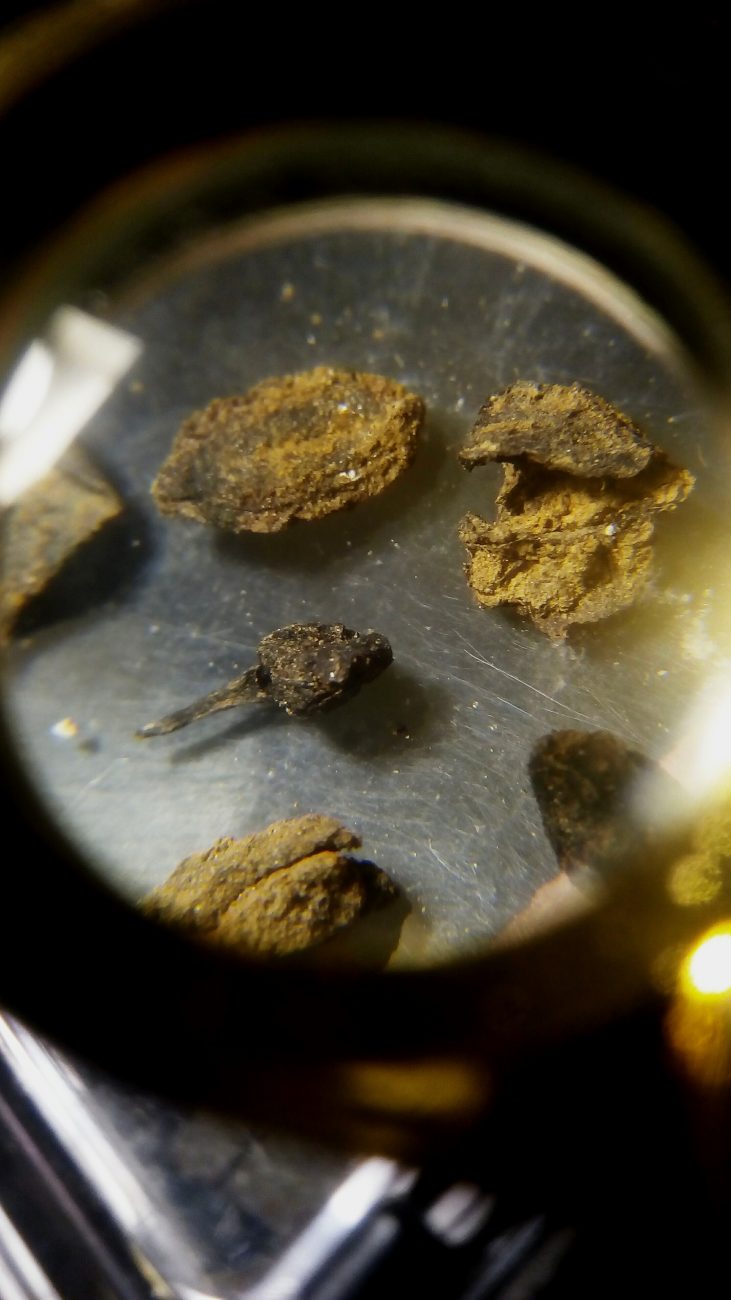“Luego de separar los restos de moluscos y peces, pensamos en profundizar las observaciones y ver si lográbamos dar con elementos menos notorios entre el cúmulo de material que estábamos analizando. Así, entre caracoles rotos, pedregullo, arena y fragmentos de huesos, fueron apareciendo las diferentes semillas junto a restos de ramificaciones y maderas”, describió José Aguilar.