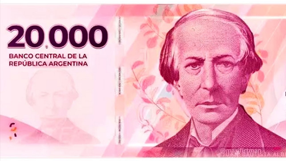 El Banco Central pone hoy en circulación el billete de $20.000 a través de su red de sucursales y de cajeros automáticos de todo el país. Es el diseño con Juan Bautista Alberdi que completa la familia “Heroínas y héroes de la patria”, inaugurada en 2022.