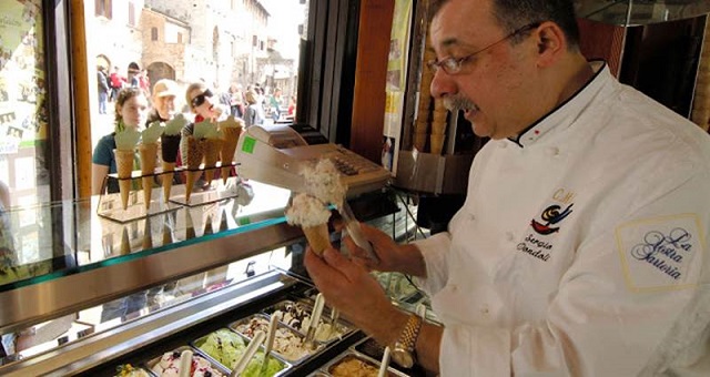 Pero la fama actual de este pueblo se debe a su helado, el más premiado del mundo, es la Gelateriadella Piazza o GelateríaDondoli, debido a su carismático maestro heladero, Sergio Dondoli, que es un mago con sus elaboraciones, normalmente habla con los turistas, posa para las fotos y cuenta que vende unos 400 kilos de helados al día, y entre risas aclara sin dar la cifra exacta para no dar datos a los inspectores de hacienda.