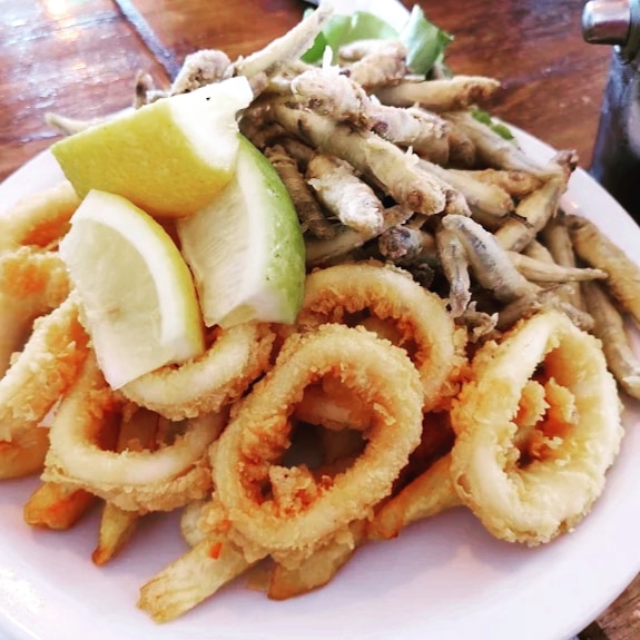 Además de exquisiteces elaboradas con frutos del Atlántico, ofrece un sandwich vegetariano de verduras grilladas que atrae incluso a comensales de playas aledañas.