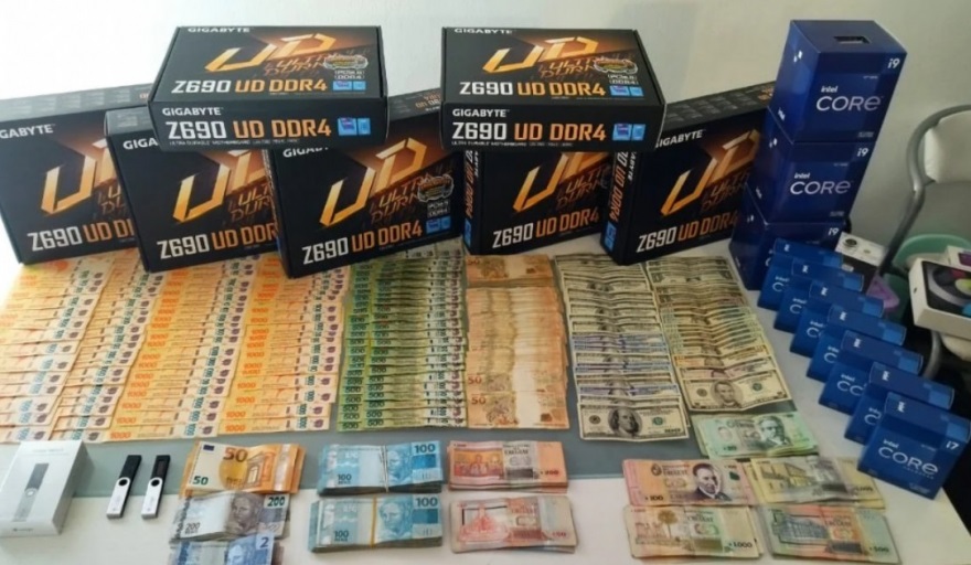 Los allanamientos se realizaron en diferentes zonas de la provincia de Buenos Aires, y se incautaron 137 teléfonos móviles, 20 tarjetas SIM, 34 computadoras portátiles, 6 computadoras de escritorio, 7 pendrives, 2 armas de fuego y municiones, 250 gramos de marihuana, elementos para la distribución de estupefacientes, 2 billeteras de criptomonedas (hardware wallet) y dinero en efectivo.
