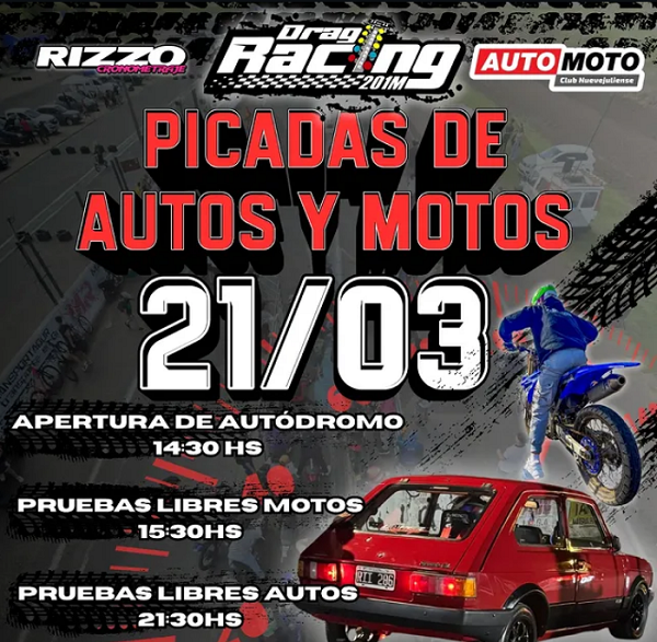 El primer gran hito de esta etapa tendrá lugar este sábado 21 de marzo en el autódromo local, con una nueva jornada de picadas que reunirá a los vehículos más veloces de la zona. La organización ha confirmado que el predio abrirá sus puertas a las 14:30 horas, iniciando con las pruebas libres de motos a las 15:30, mientras que los automóviles tomarán la pista a partir de las 21:30. Para optimizar el rendimiento de los competidores, se aplicará el tratamiento de adherencia VHT sobre el asfalto. El evento, que tiene una entrada general fijada en $10.000, contará además con servicios de gastronomía y stands comerciales.