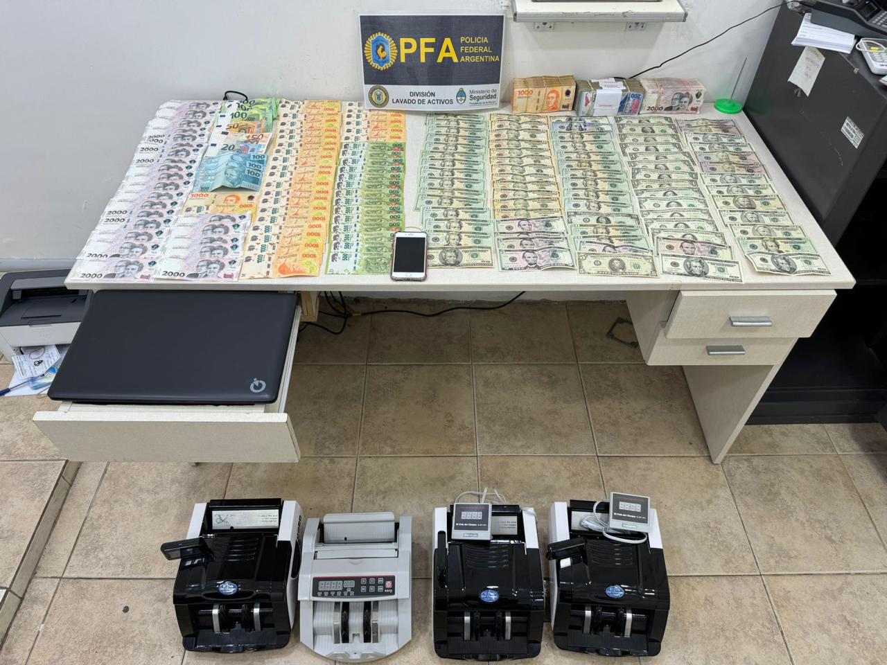 De esta manera, los federales realizaron los 10 allanamientos en simultáneo, donde detuvieron a los cinco involucrados. Además, secuestraron más de 62 millones de pesos, 50 mil dólares, 10 mil euros, máquinas contadoras de billetes y documentación de interés.