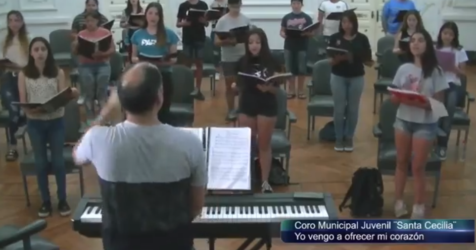 El Coro Infanto-Juvenil Municipal “Santa Cecilia”, que lleva adelante 16 años de trayectoria ininterrumpida con la dirección del Profesor David Maccagnani, superó las restricciones impuestas por la pandemia, y tras retomar sus ensayos presenciales, con grupos reducidos y cumpliendo con los protocolos vigentes, en su ensayo final de fin de año, logró grabar dos obras.