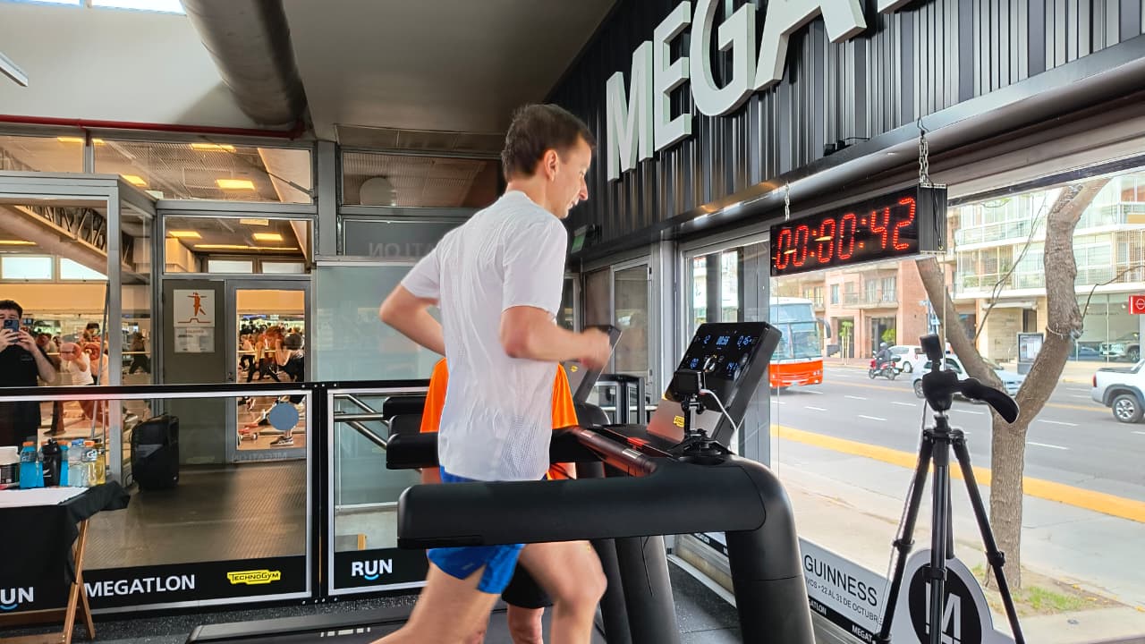 dio el primer paso del desafío que buscará llevar su nombre al libro Guinness con un objetivo solidario. El atleta, poseedor de los récords nacionales de 100 km y 24 horas en cinta, se encuentra completando las primeras horas de carrera manteniendo un ritmo sostenido y buen ánimo.