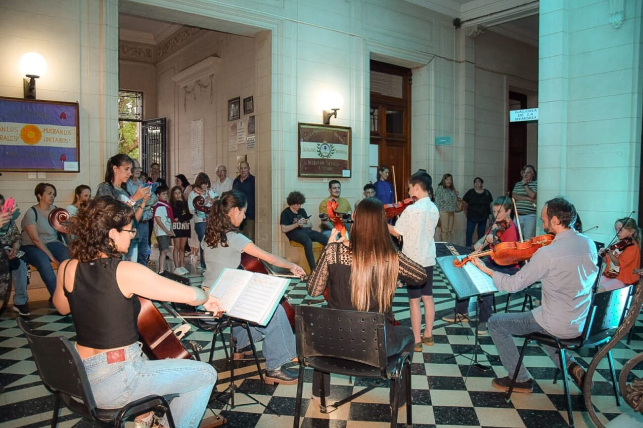 Con la presencia de numerosos vecinos que acompañaron a los artistas y otros que se sumaron espontáneamente, sorprendidos y halagados por la realización, se vivió un atardecer nuevejuliense distinto, en honor a esta efeméride, asociada a su patrona cristiana, Santa Cecilia, cuya historia está atravesada por el martirio y el canto como forma de fe.