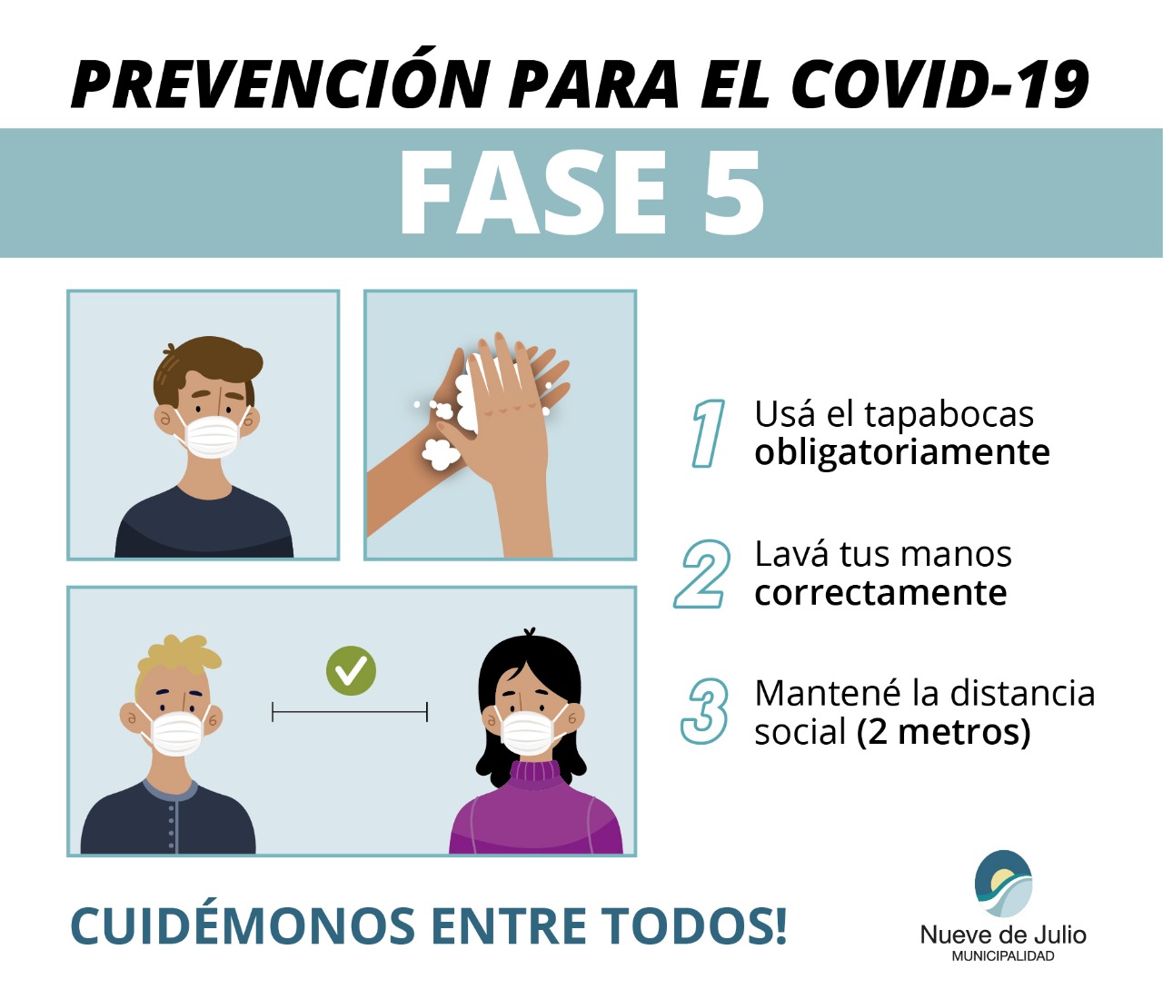 La Municipalidad de Nueve de Julio informa que según lo establece el DECRETO Nº 604/2020 publicado hoy en el Boletín Oficial de la Provincia de Buenos Aires, el partido de 9 de Julio continua en la fase de “Distanciamiento Social, Preventivo y Obligatorio”.