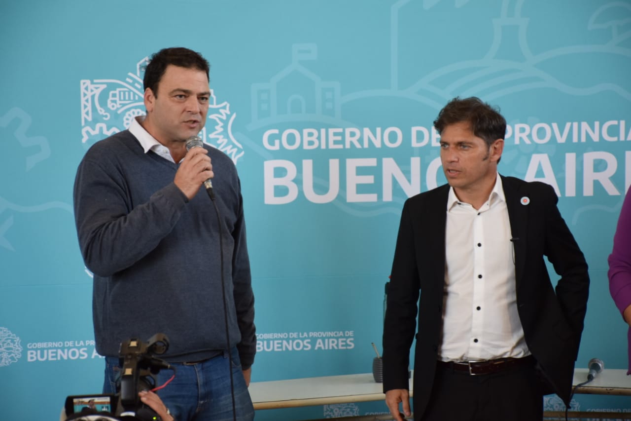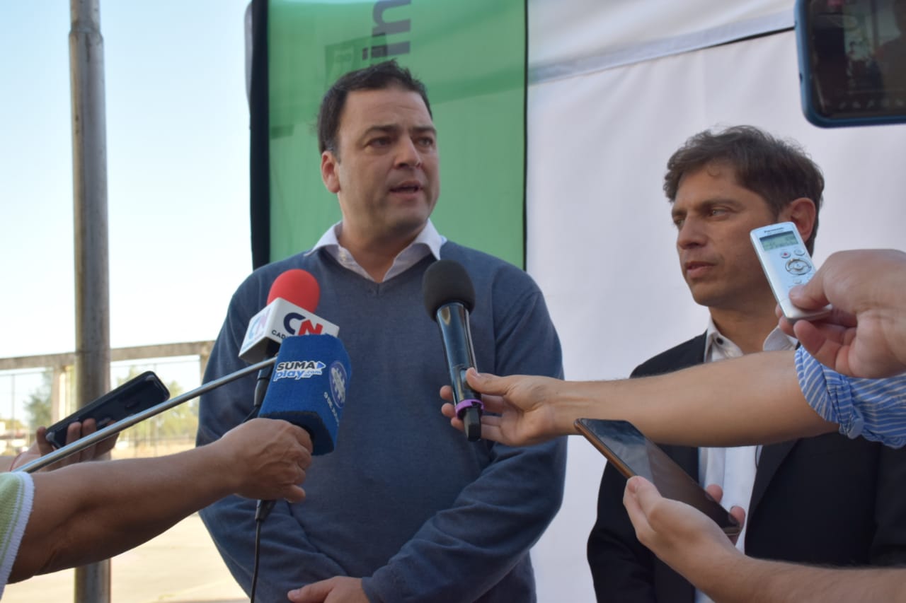 El Intendente Municipal de Nueve de Julio, Mariano Barroso; junto a la senadora provincial por el Frente de Todos, María Elena Defunchio, acompañó al Gobernador de la Provincia de Buenos Aires, Axel Kicillof; en su visita a nuestra ciudad.