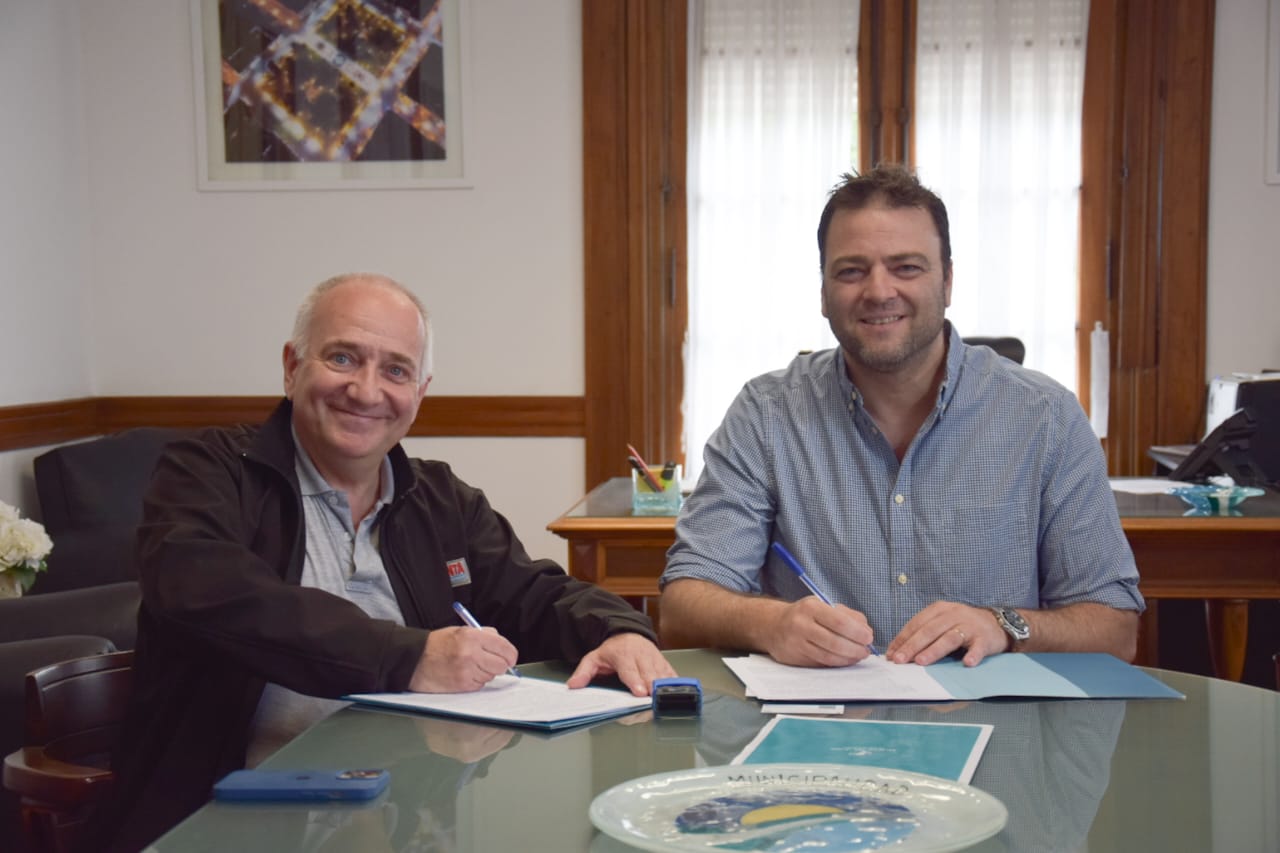 Esta mañana, en su despacho, el Intendente Municipal de Nueve de Julio, Mariano Barroso, procedió a suscribir un importante convenio marco con el Instituto Nacional de Tecnología Agropecuaria (INTA), representado en la oportunidad por el director del Centro Regional Buenos Aires Norte, Ing. Agr. Dr. Hernán Jorge Trebino.