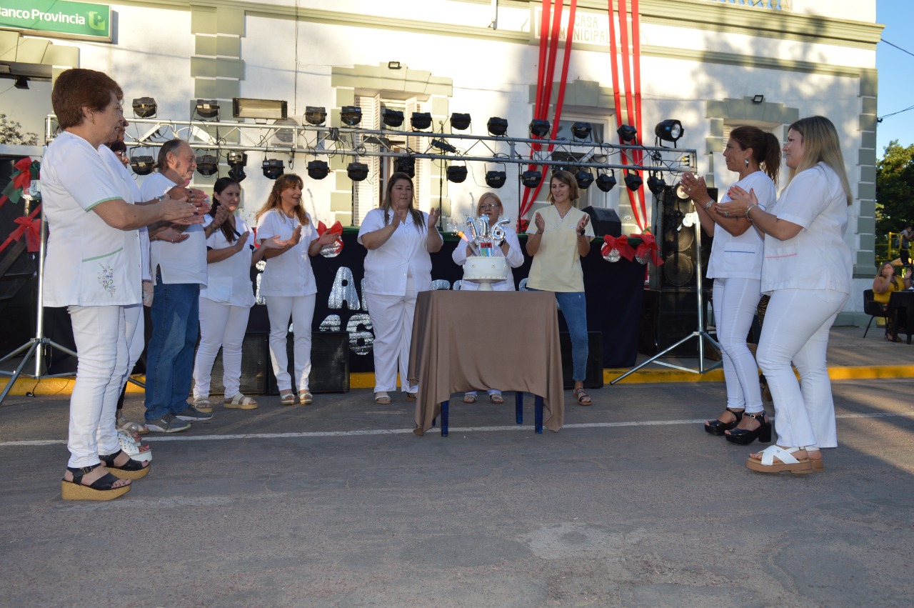 Por otra parte, personal del Hospital Municipal “Manuel Arce” –que fue muy aplaudido durante el desfile de instituciones, al igual que el cuerpo de Bomberos Voluntarios-, presentó una torta simbólica del aniversario de esta comunidad.