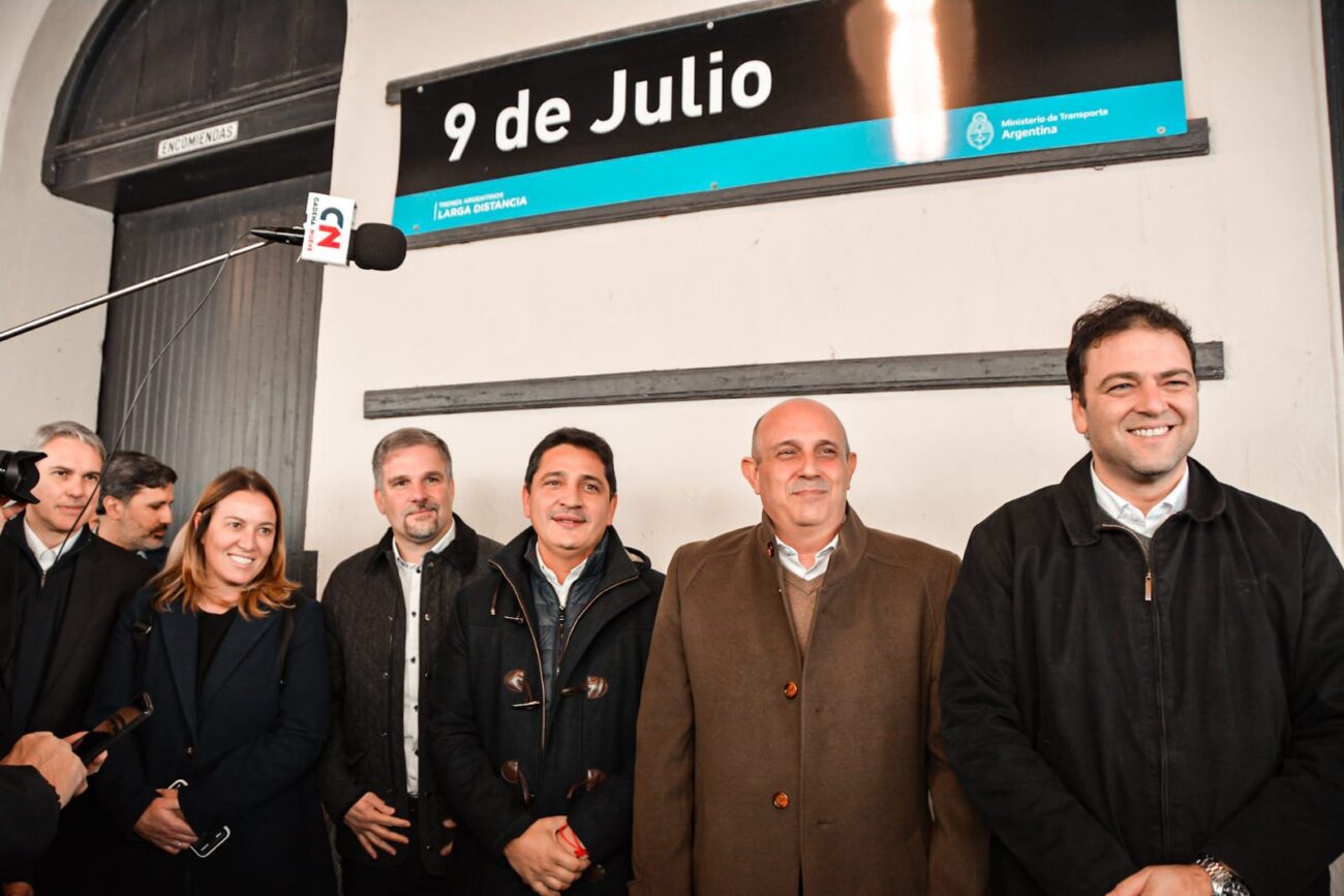 El acto fue acompañado por el Intendente Municipal de Nueve de Julio, Mariano Barroso, y contó con la presencia de autoridades nacionales, encabezadas por el ministro de Transporte, Alexis Guerrera, acompañado de funcionarios de Trenes Argentinos.
