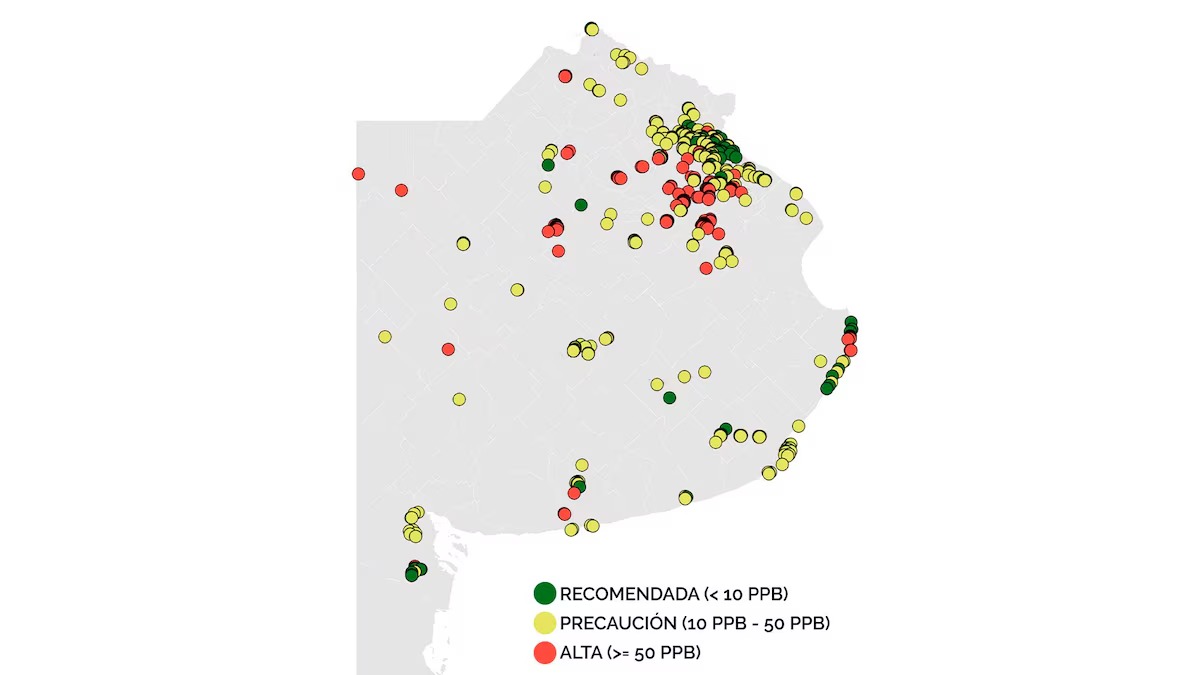 El Mapa de Arsénico generado por investigadores del ITBA (Instituto Tecnológico de Buenos Aires) disparó las alarmas el martes 25 al anunciar el relanzamiento de su Mapa de Arsénico, una herramienta esencial para monitorear la presencia de arsénico en el agua de diversas regiones del país. Con más de 350 muestras recolectadas hasta la fecha, este mapeo ofrece una visión detallada de la distribución de arsénico en reservorios de agua subterránea y superficial a lo largo de la Argentina. Desde su creación, ha sido una referencia crucial tanto para investigadores como para la población en general, proporcionando datos. Nueve de Julio está entre las poblaciones afectadas.