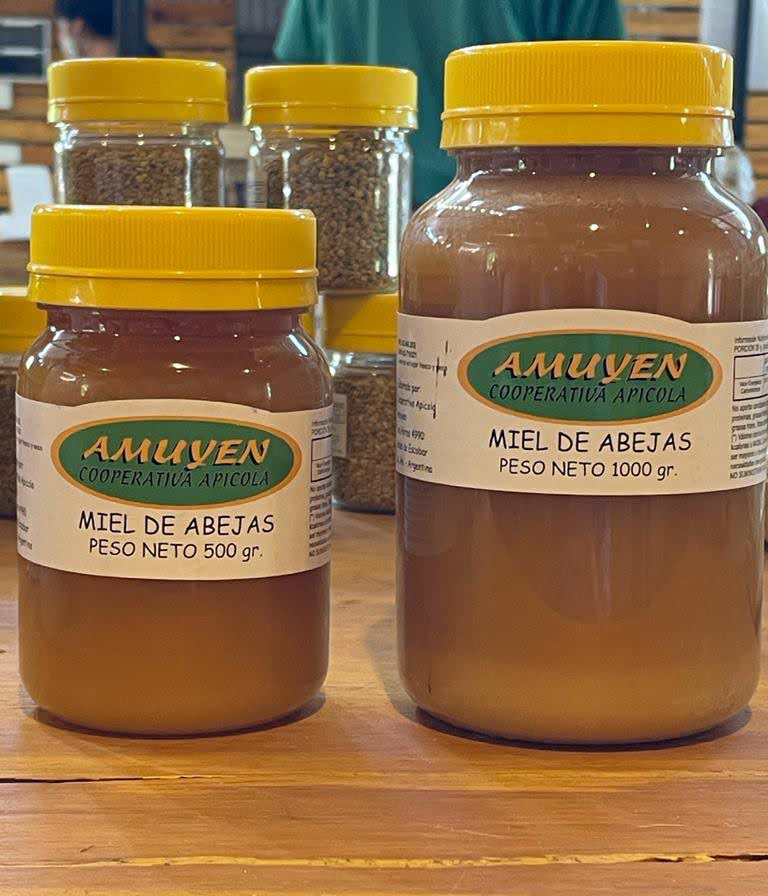 La cooperativa apícola “Amuyen” -@amuyenmiel (FB)-,  del partido de Escobar está abocada a la venta de miel líquida, cremosa y también del polen.