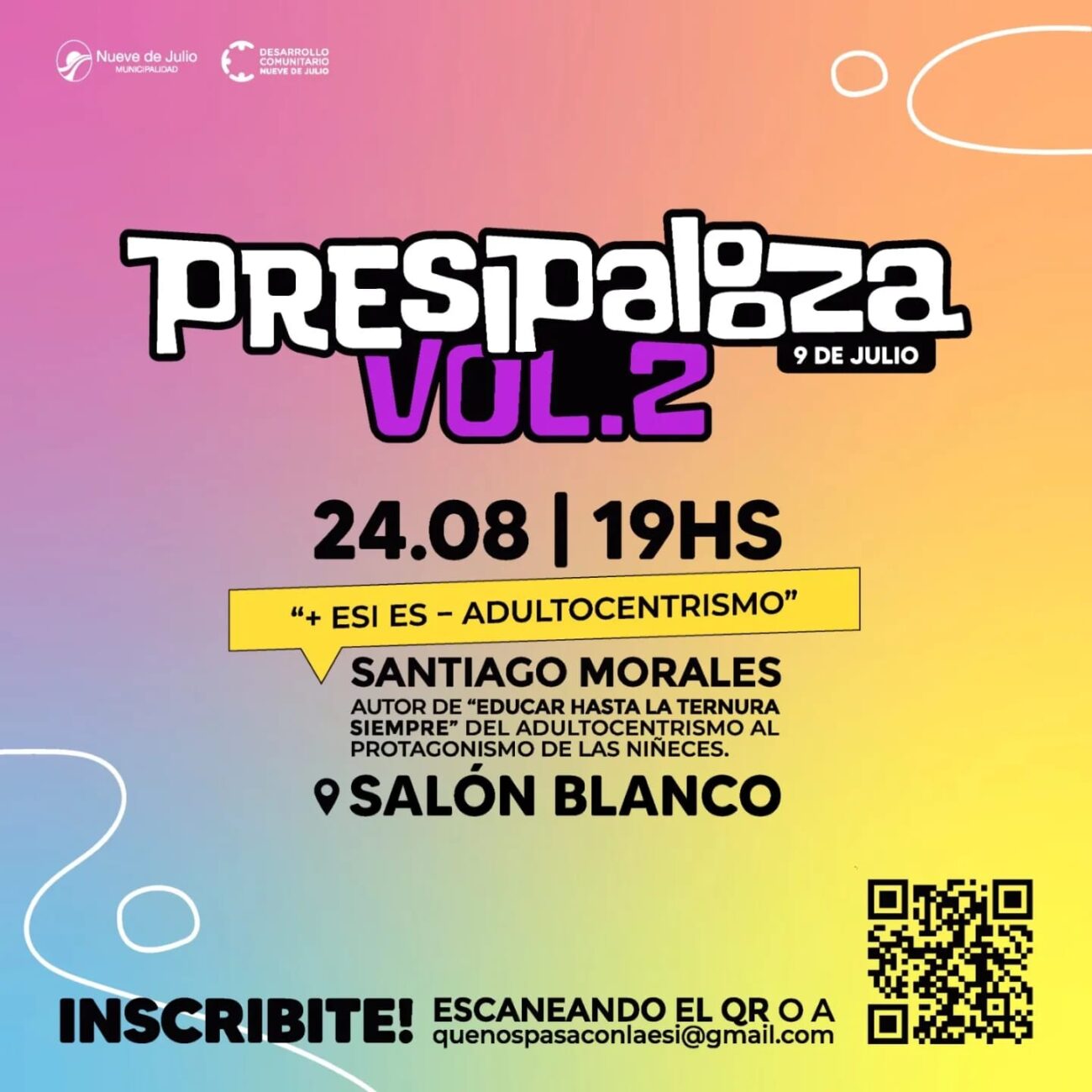 En esta ocasión, la charla “ + ESI – Adultocentrismo” se realizará el día jueves 24 de agosto a las 19:00 hs en el Salón Blanco municipal y estará a cargo del reconocido sociólogo, investigador y educador, Santiago Morales y como ocurrió en las exposiciones anteriores, podrán participar docentes, docentes en formación, estudiantes, familias y comunidad en general.