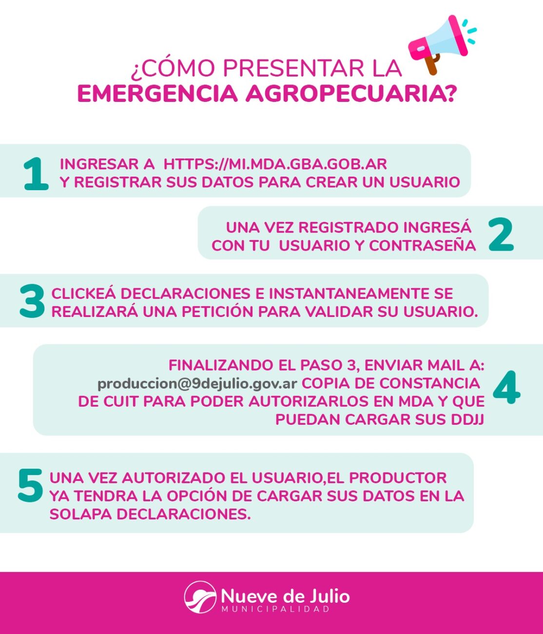 La Municipalidad de Nueve de Julio, a través de la Secretaría de  Gobierno y Producción, convoca a los productores agropecuarios del partido de 9 de Julio afectados por sequía a presentar la Declaración Jurada por Emergencia y/o Desastre Agropecuario.