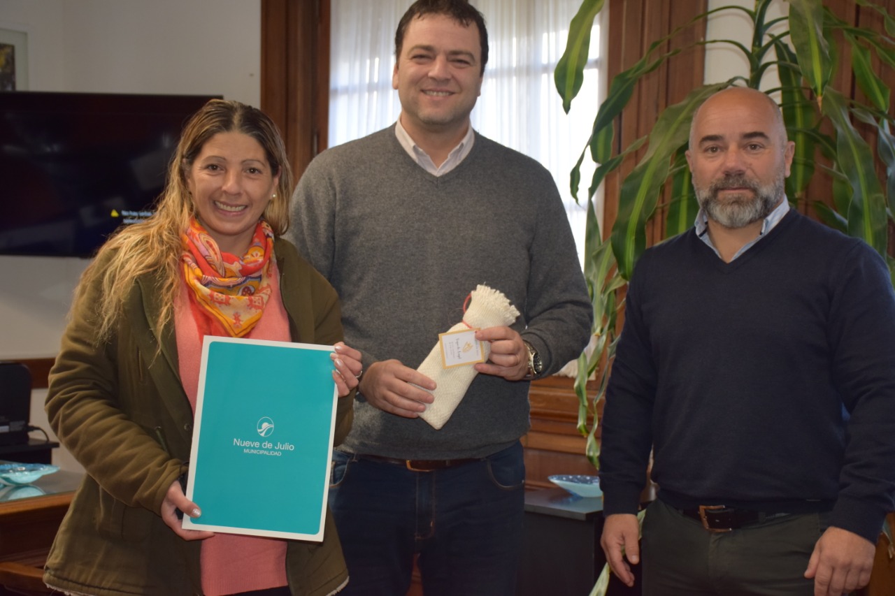 En la mañana de hoy, en su despacho, el Intendente Municipal de Nueve de Julio, Mariano Barroso, acompañado del secretario de Gobierno, Víctor Altare, procedió a hacer entrega de un microemprendimiento productivo a la convecina Alicia Vázquez, quien se dedica a la producción de trapos de piso y solicitó este apoyo para la adquisición de una máquina que le permitirá ampliar la producción y fabricar a futuro trapos rejilla.