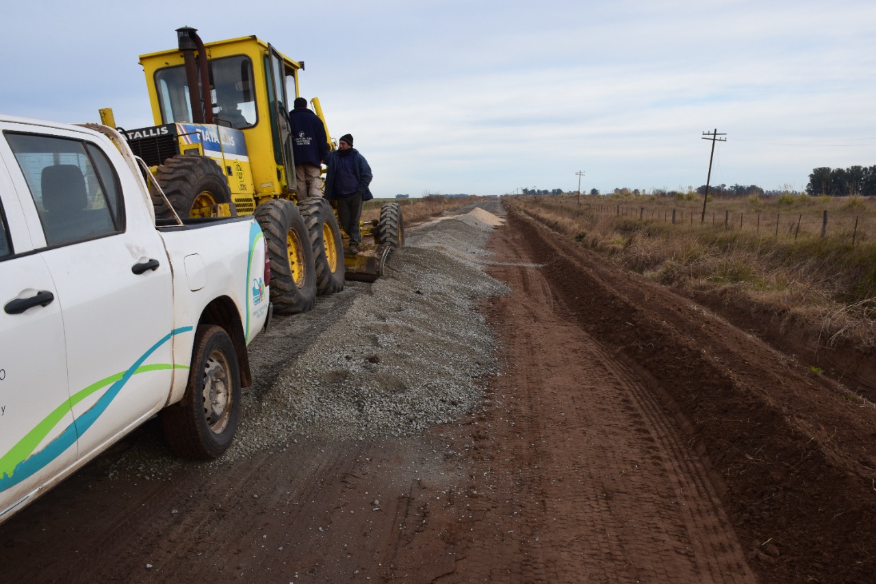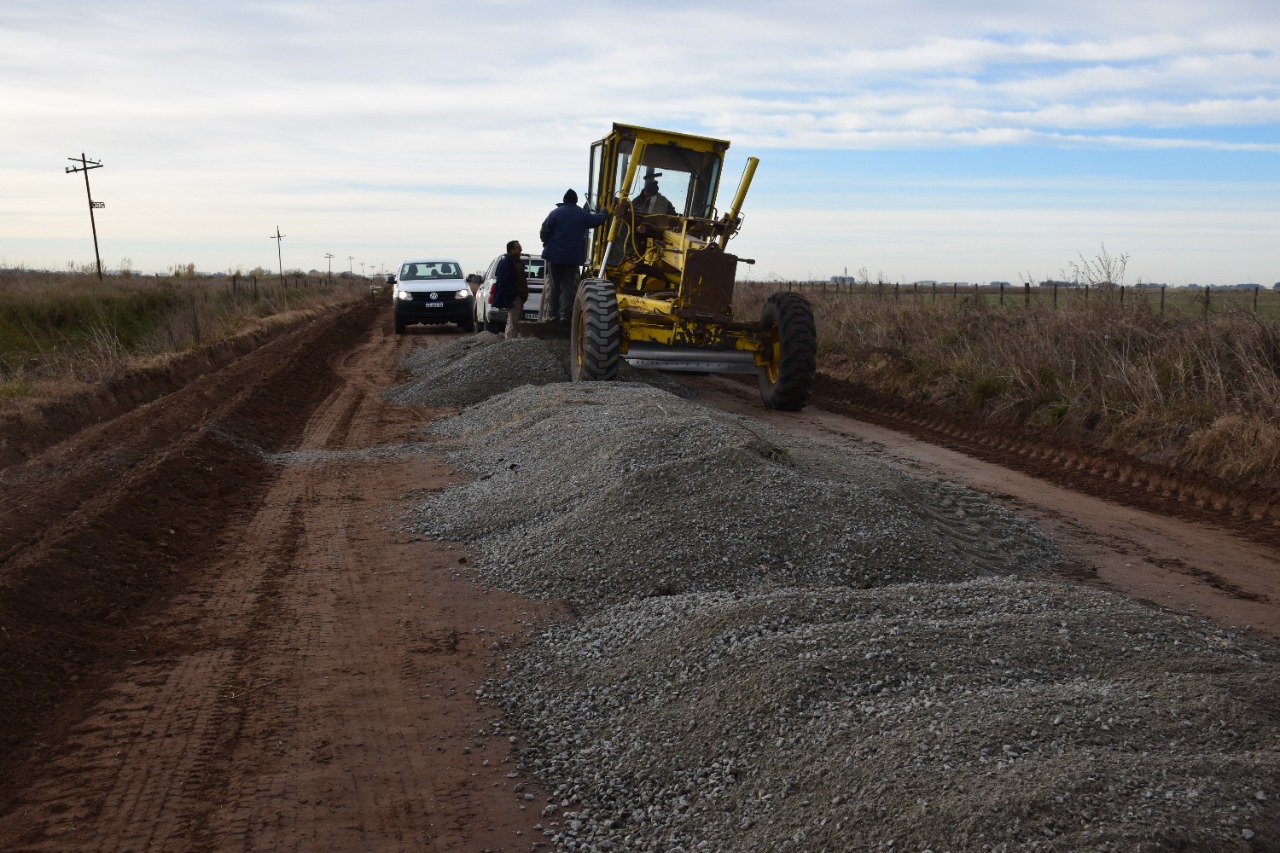 La Secretaría de Obras Públicas de la Municipalidad de 9 de Julio trabaja con buen ritmo la colocación de piedra estabilizadora en el acceso a la localidad de Carlos María Naón, obra que vecinos, transportistas y productores rurales esperan desde hace un largo tiempo.