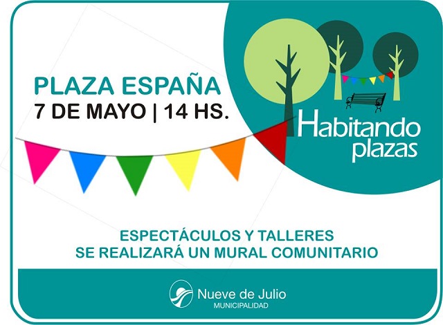 La Municipalidad de Nueve de Julio, a través de la Secretaría de Cultura, Educación y Deportes y la Dirección de Cultura, se encuentra ultimando detalles para la puesta en marcha del ciclo 2017 de “Habitando Plazas”, instancia que tendrá lugar el próximo domingo 21 de mayo a las 14 hs. en Plaza España, luego de que se postergara semanas atrás por cuestiones climáticas.