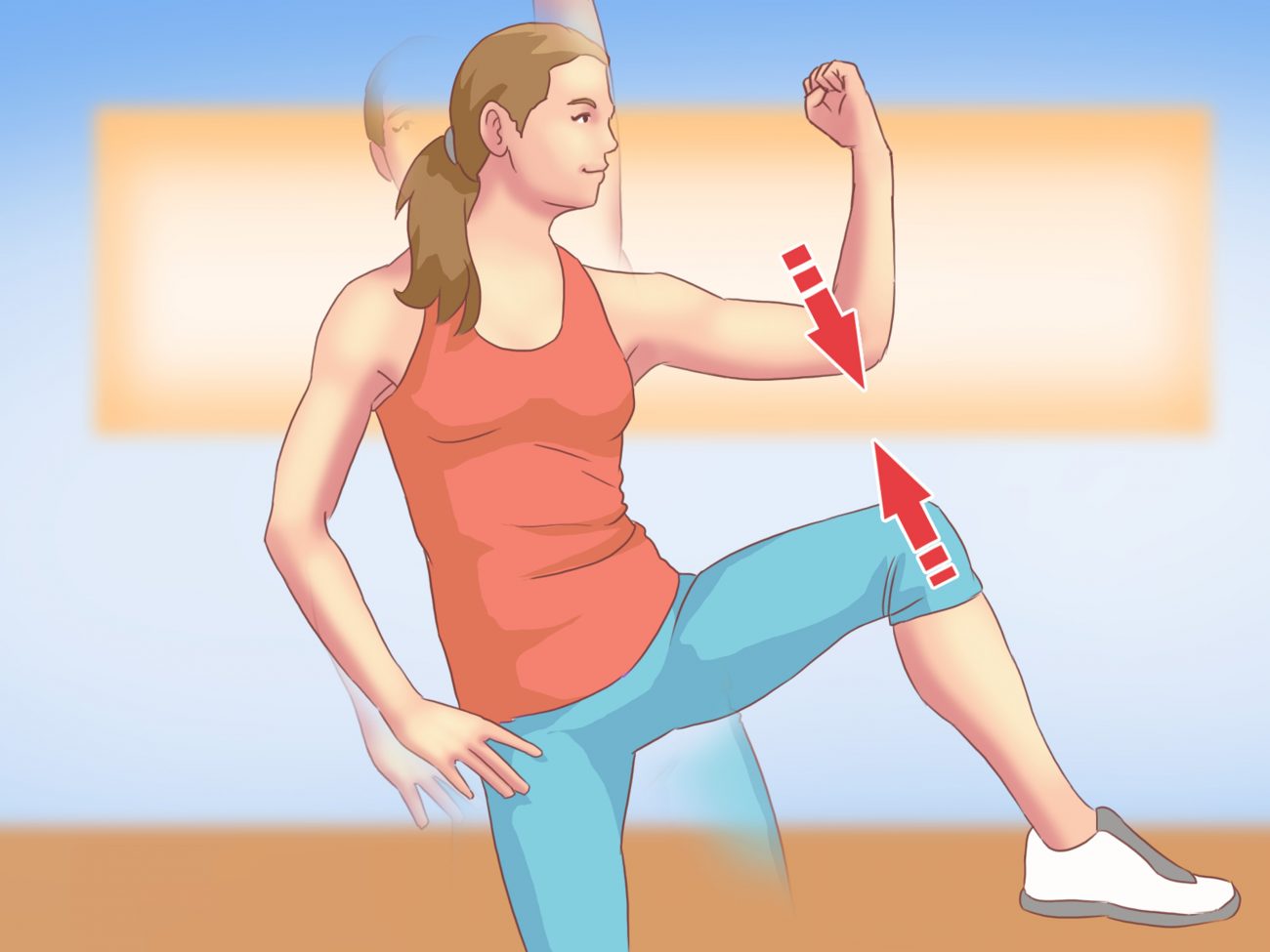 (30 seg.) Marcha en el lugar: el objetivo es aumentar tu frecuencia cardíaca. Levante las rodillas y mueva los brazos. Acelere el ritmo si puede.