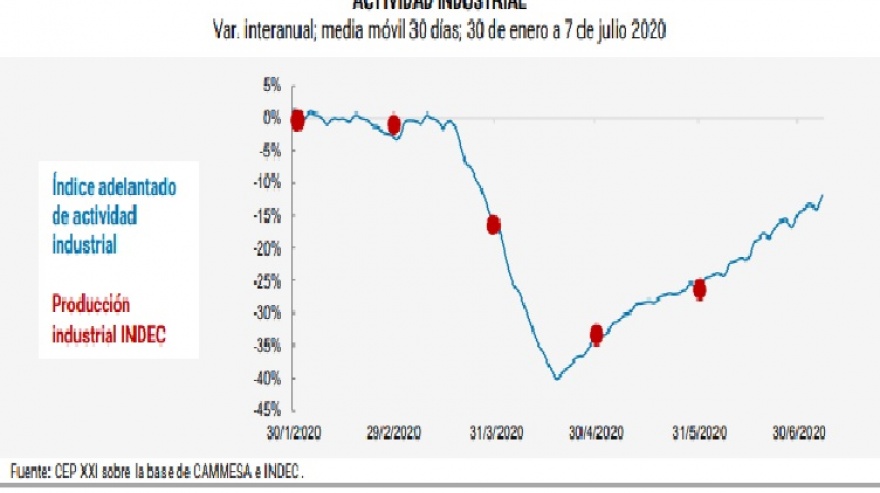 Así se desprende del informe de julio del Centro de Estudios para la Producción (CEP XXI) del Ministerio de Desarrollo Productivo que indicó que aunque todavía no se recuperaron los niveles de producción anteriores al inicio del Aislamiento Social Preventivo y Obligatorio (ASPO), la industria pasó de caer un 40% interanual entre fines de marzo y principios de abril, un 12% entre el 7 de junio y el 7 de julio.