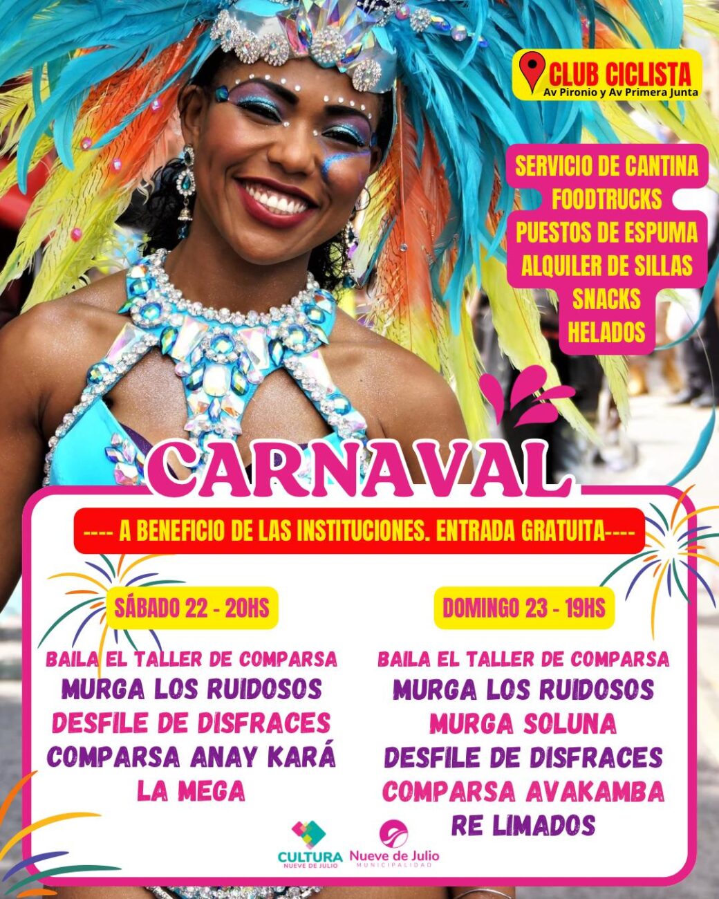 Sábado 22 y domingo 23 de febrero el Club Ciclista se convierte en el escenario del Carnaval Nuevejuliense. Maria Vélez, Directora de Cultura de la Municipalidad de 9 de Julio, estuvo en «Tarde para todo» contando todos los detalles que tenes que tener en cuenta para asistir al evento y disfrutar de dos dias de fiesta.