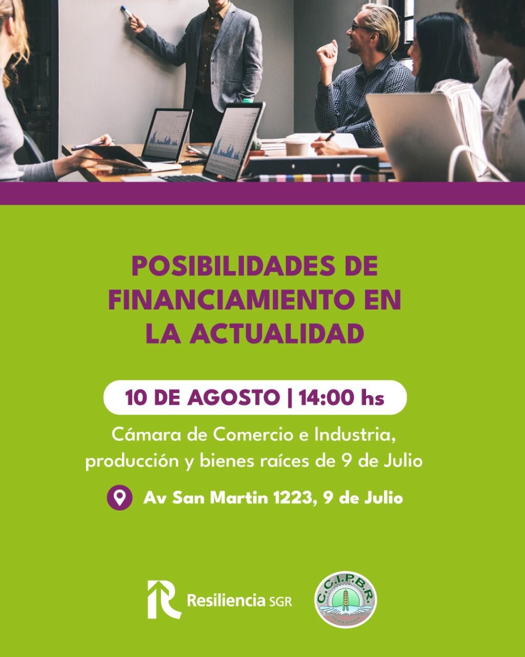 En pos de alcanzar herramientas a sus asociados y comercio en general, la Cámara de Comercio e Industria de 9 de Julio, invita a comerciantes, industriales y todo tipo de emprendedores para el próximo miércoles 10 de agosto a las 14hs. a una charla libre y gratuita que se dará en el Auditorio, por parte de Resilencia SGR, donde se dará a conocer cuáles son las oportunidades en la actualidad para seguir fortaleciendo la Pyme.
